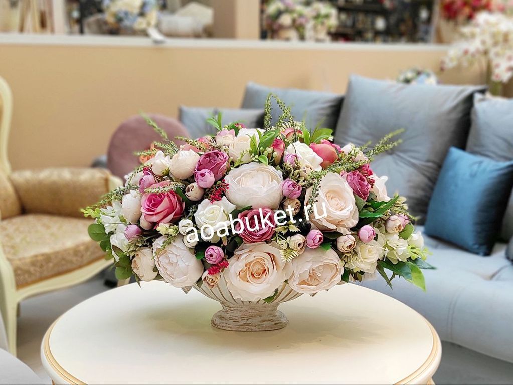 Композиции небольших размеров из искусственных цветов для интерьера