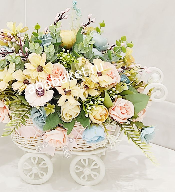 Цветочная композиция Колясочка с цветами Венера № М018.