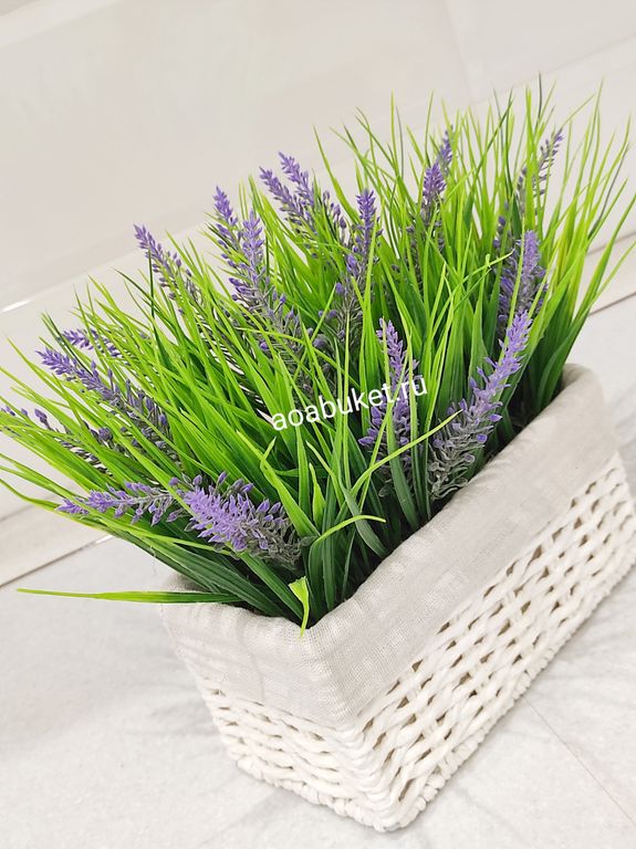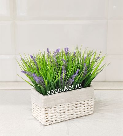 Искусственная трава Осока с лавандой в белом боксе √Т007