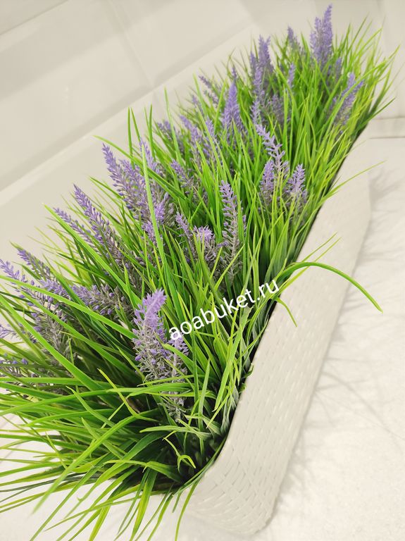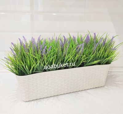 Искусственная трава Осока с лавандой √Т011в светлом ящике ротанг