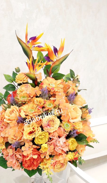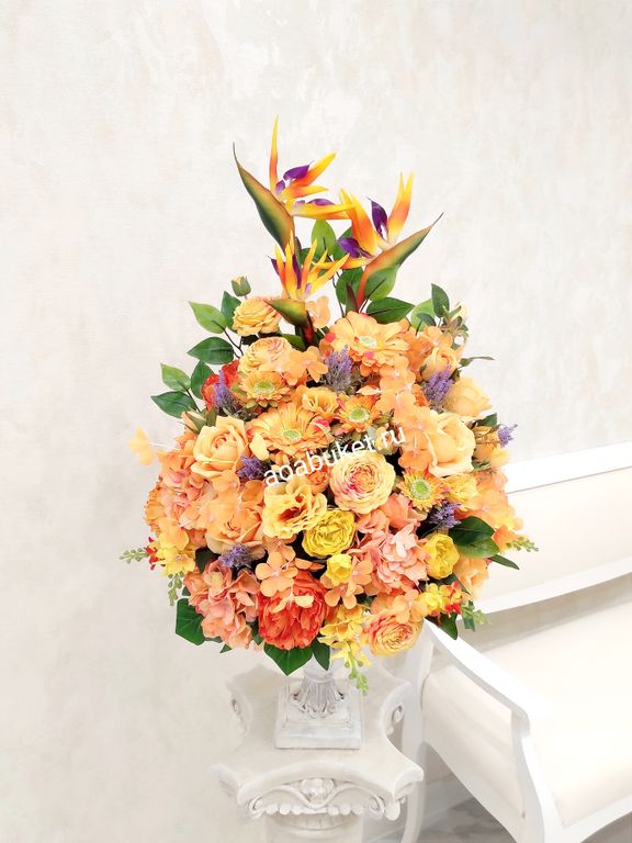 Цветочная композиция из искусственных цветов Стрелицы Тропическая симфония № Б005