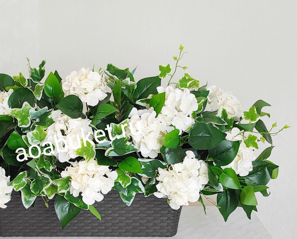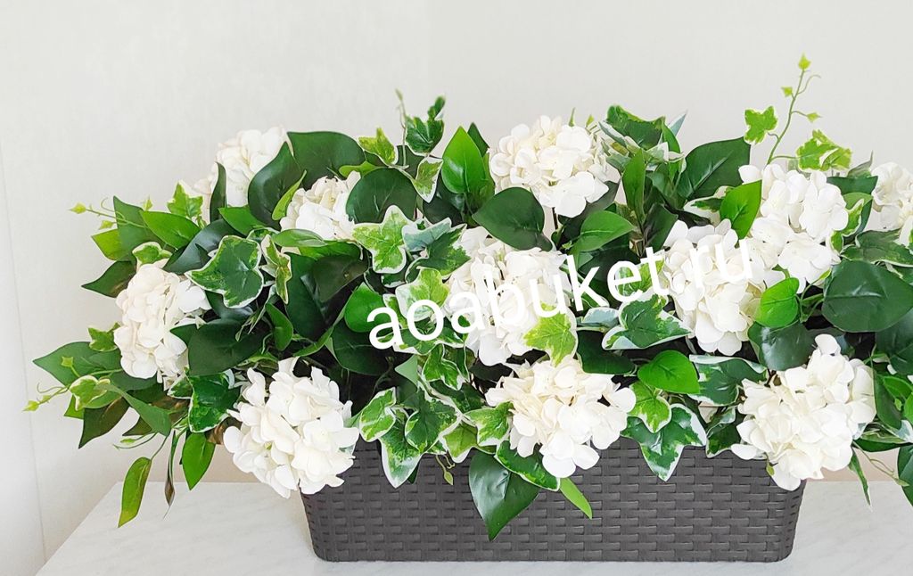 Композиция из искусственных цветов на сцену Белая Гортензия № ОС004