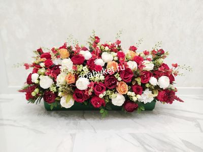 Композиция из искусственных цветов красная - Фламенко № НП022 - украшение мероприятия, сцены, президиума большими букетами
