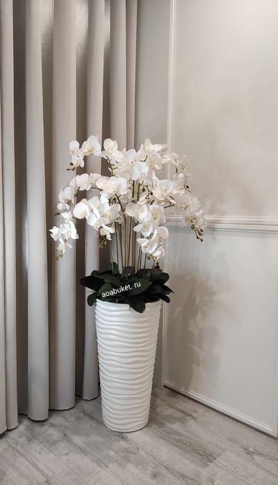 Великолепная напольная композиция из белых орхидей.