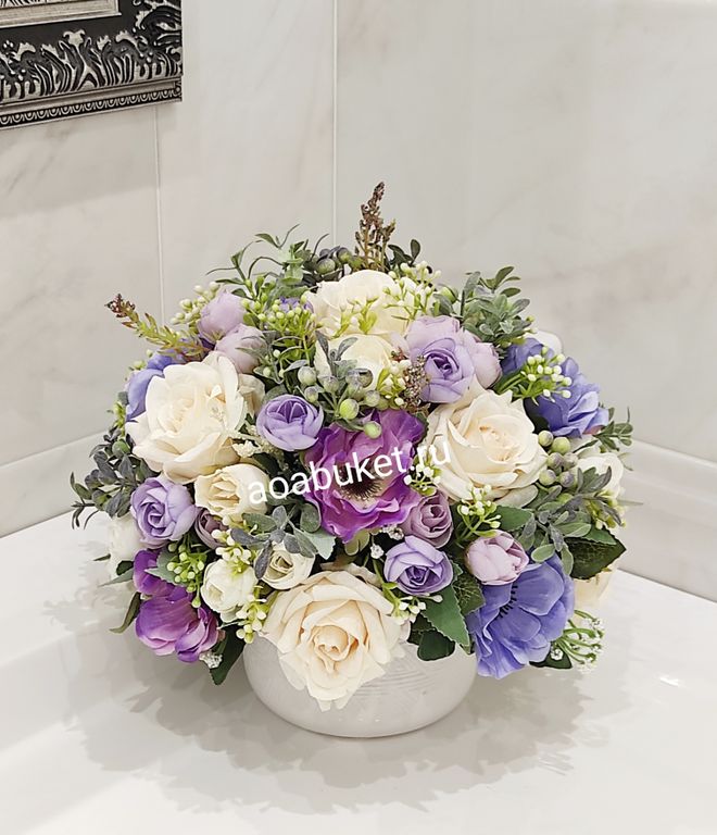 Композиция собрана в светлом, керамическом кашпо. Красивый и оригинальный подарок.