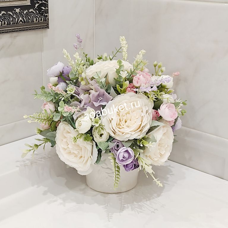 Нежная композиция из искусственных цветов прекрасно дополнит и украсит ваш интерьер.