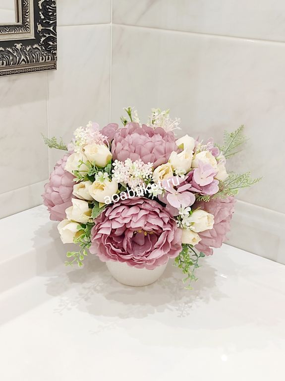 Композиция из искусственных цветов пионов, гортензии, камелии № МК006.