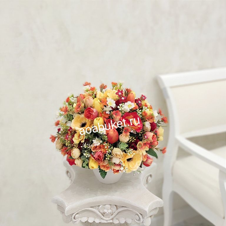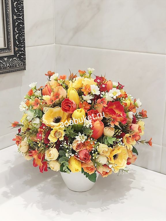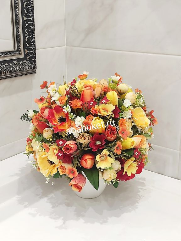 Цветочная композиция из искусственных цветов - Арлет жёлтый в оранжевом № МС044