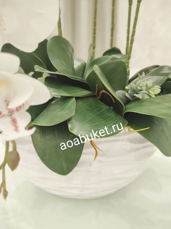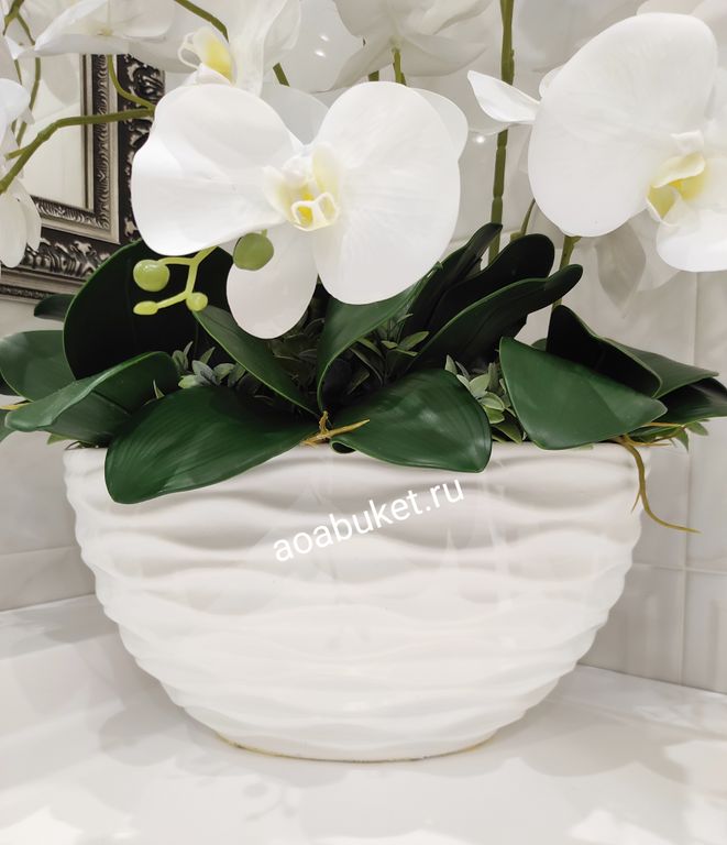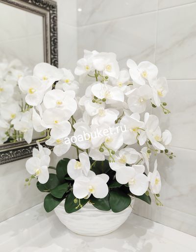 Фееричная Композиция из искусственных цветов белой орхидеи - Орхидея белая в большой вазе № ОР024