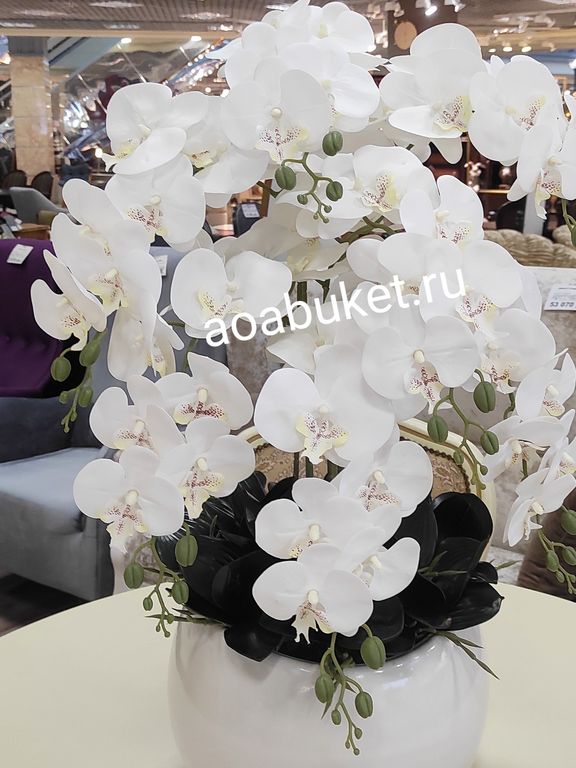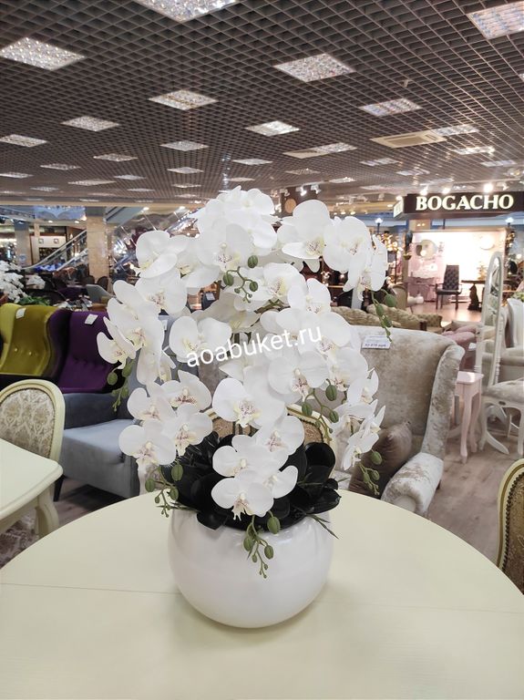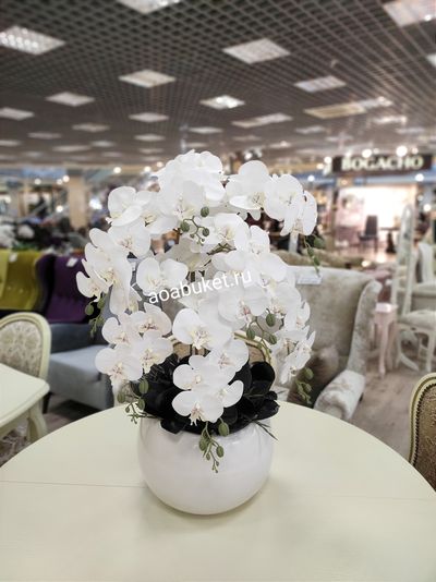Композиция из искусственных цветов Орхидея белая в круглой вазе № ОР030