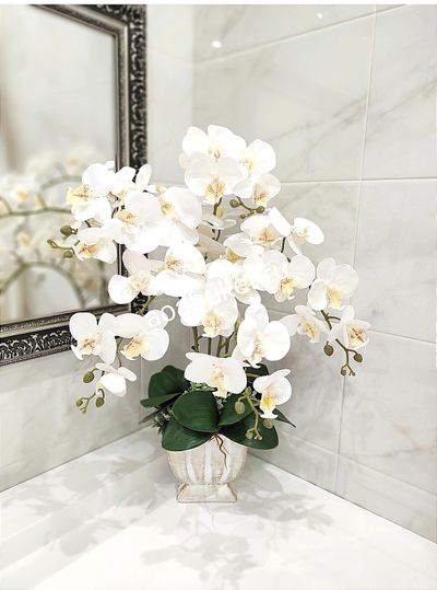 Композиция орхидея белая кашпо с позолотой № ОР019.