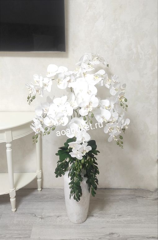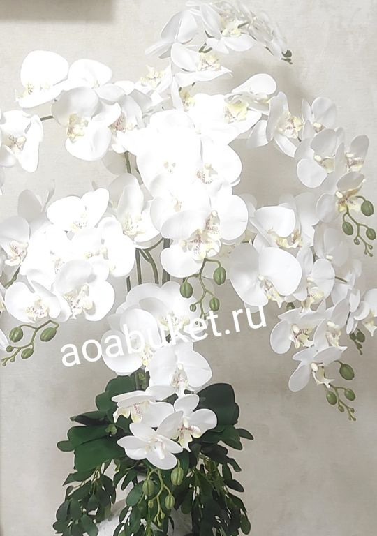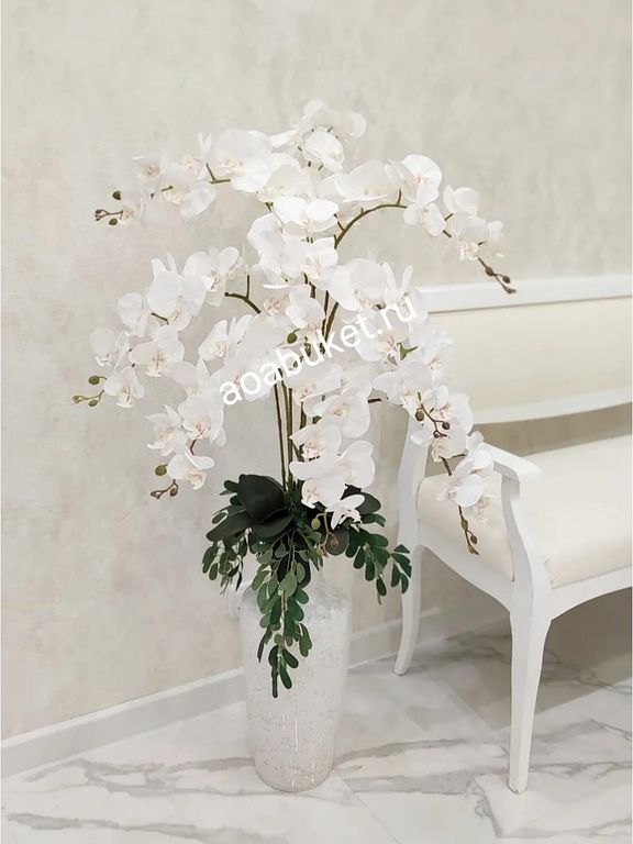 Композиция орхидея белая девять веток в высокой керамической вазе № ОР023.
