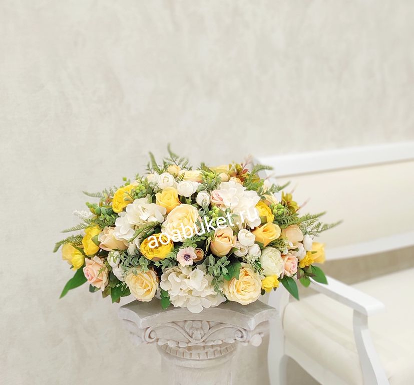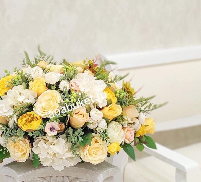 Незабываемая композиция из искусственных цветов жёлтых и молочных оттенков № УНС049 - Отличный выбор для украшения интерьера.