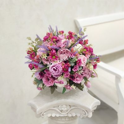 Цветочная композиция из искусственных цветов Фиолет в розовом № МС024