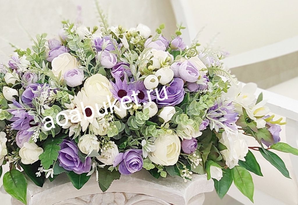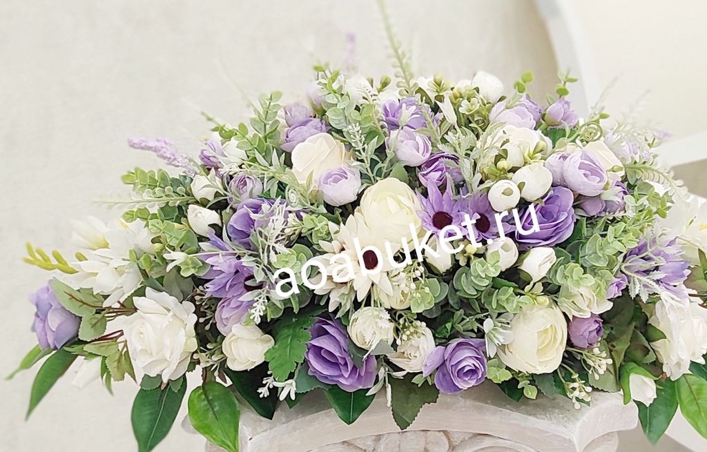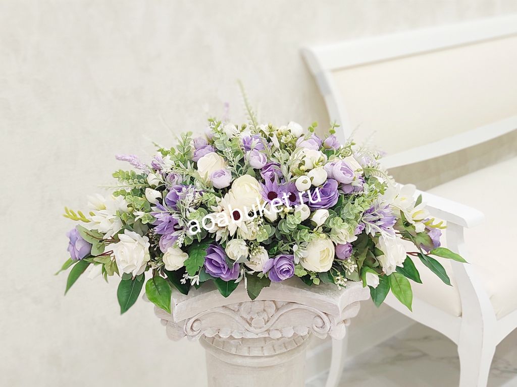 Утонченная горизонтальная композиция из искусственных цветов Аметист станет идеальным украшением для вашего интерьера.
