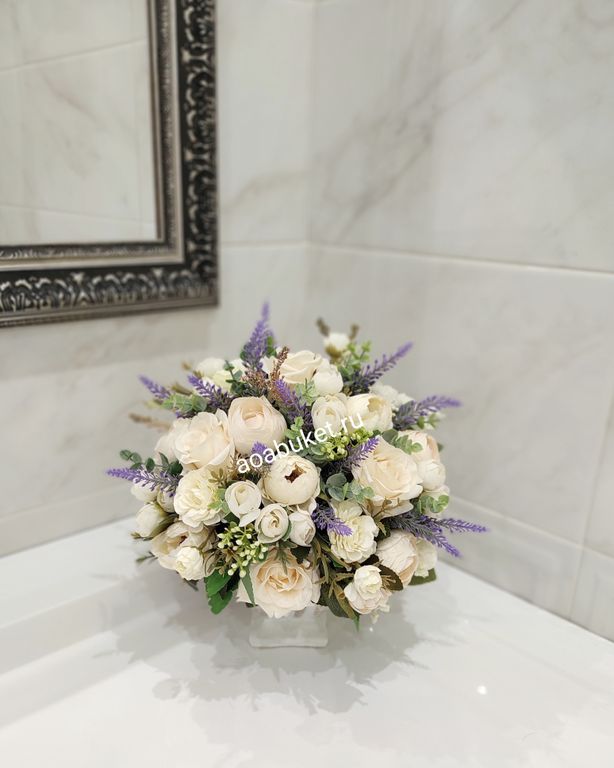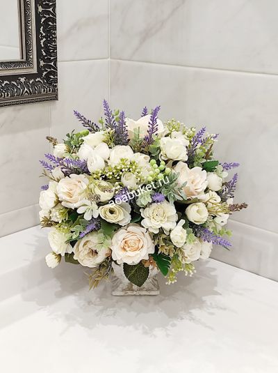 Композиция из искусственных цветов светлая с лавандой № М001.