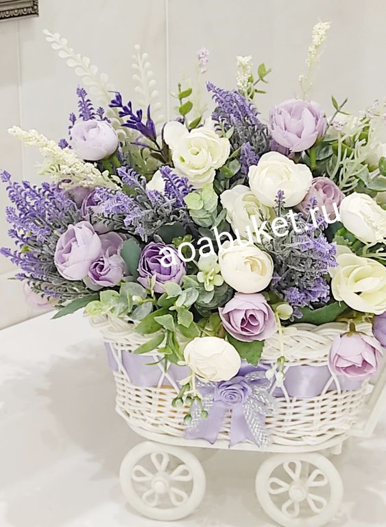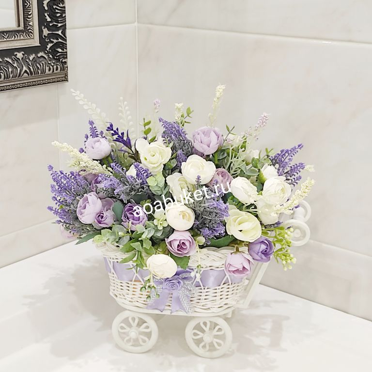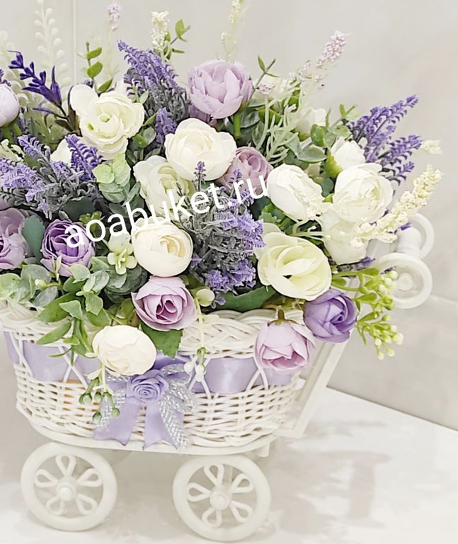Композиция из коллекции искусственных цветов в колясочке № М027