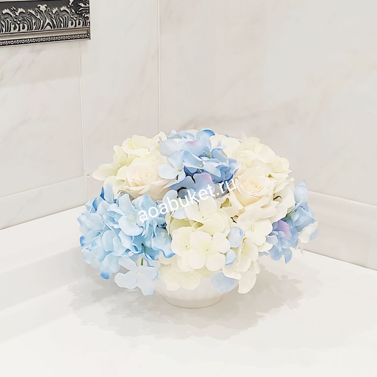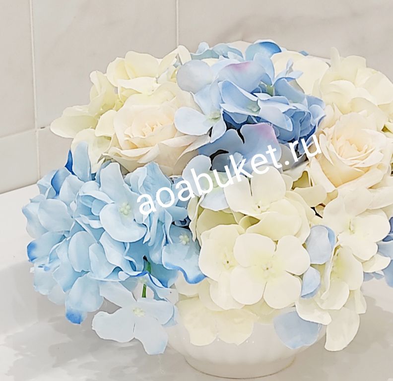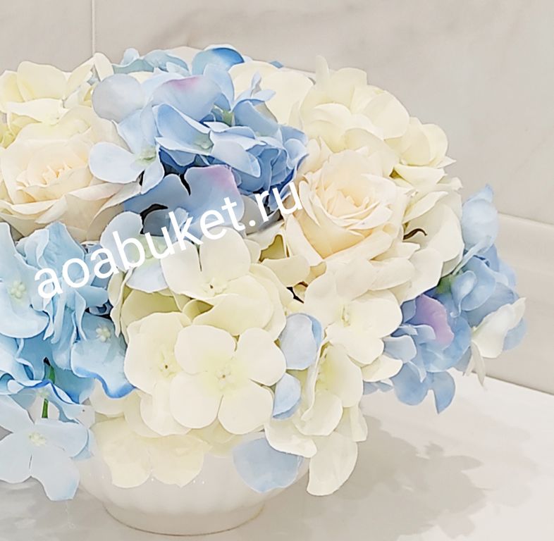 Композиция из искусственных цветов Гортензия белая и голубая № М028.
