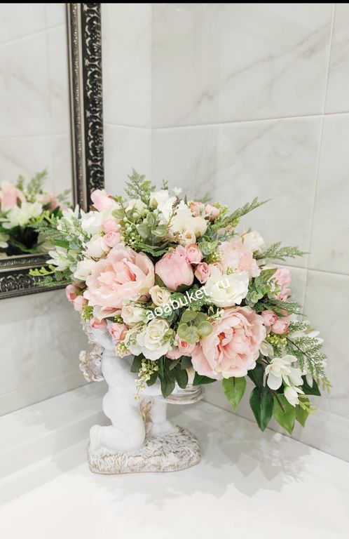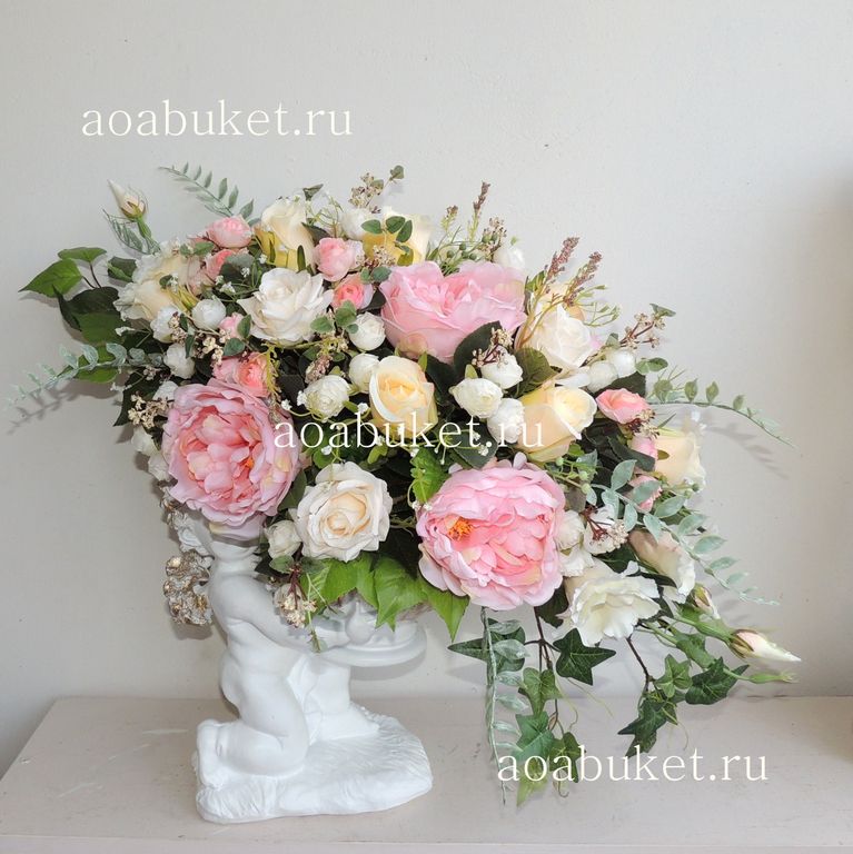 Композиция цветочная на статуэтке ангелочка беж № АР30.