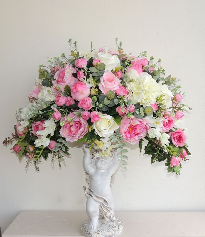 Композиция из искусственных цветов на статуэтке ангела Розовый шик № СА001