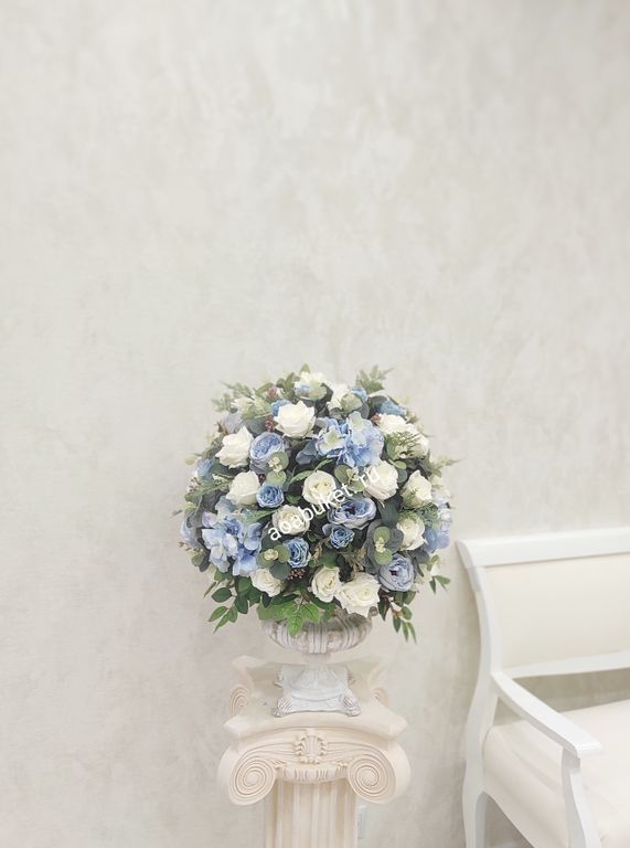 Интересная Композиция из искусственных цветов в белом и голубом цвете - Голубые дали № АР027