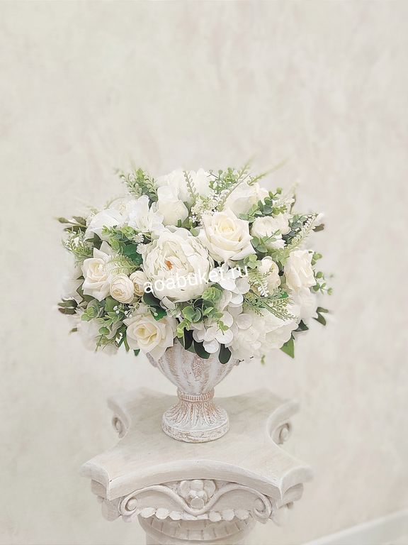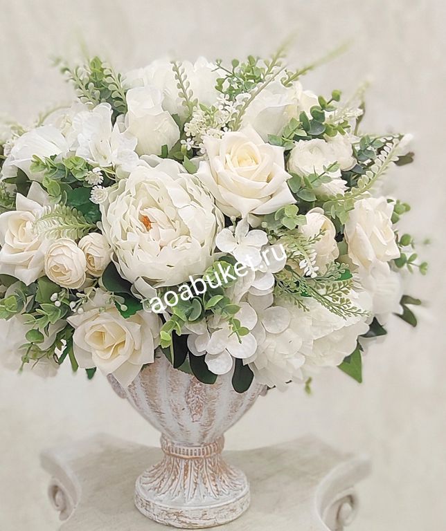 Нежная Композиция из искусственных цветов в вазе - Белое облако № КС001к