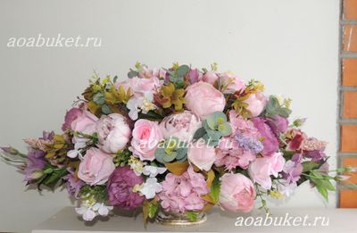Атмосферная Композиция из искусственных цветов пудровых расцветок № КВВ051 - для зоздания романтичного настроения