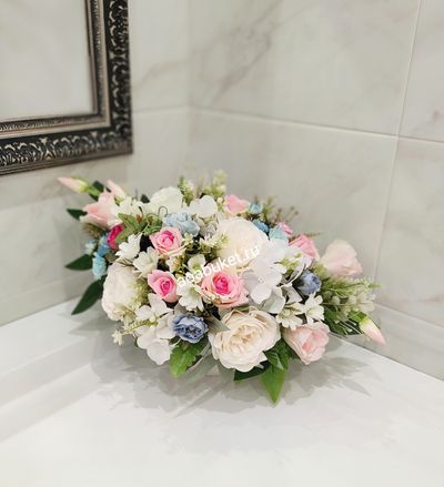 Композиция из искусственных цветов - белая с розовым и голубым № М008