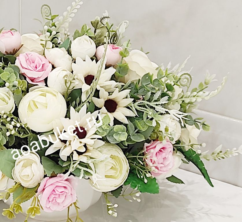 Цветочная композиция из искусственных уветов - Алиса розовая № МК007