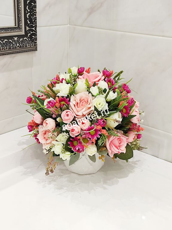 Композиция из искусственных цветов - Розовый Шарм № МК045