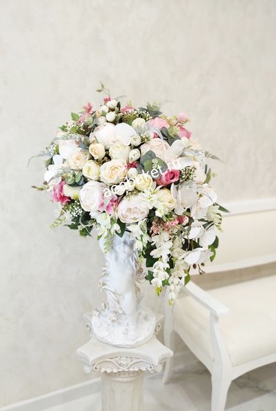 Фееричная Композиция из искусственных цветов на статуэтке Ангела - Алисия №СА0031 - для украшения