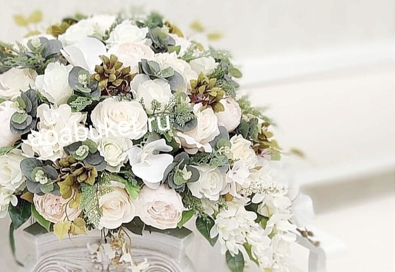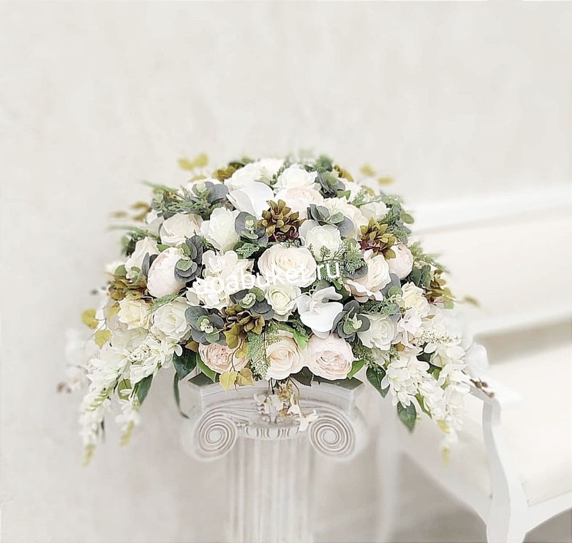 Роскошная Композиция из искусственных цветов в белых тонах № НП019 - Отличный выбор для украшения интерьера
