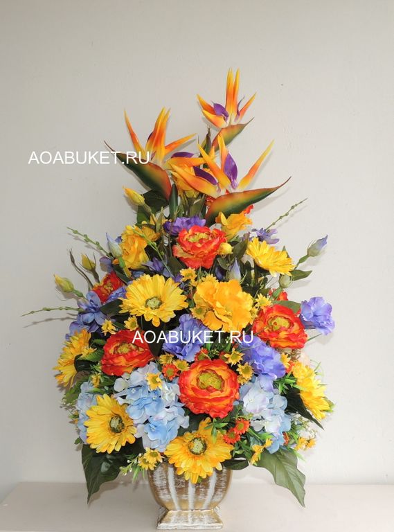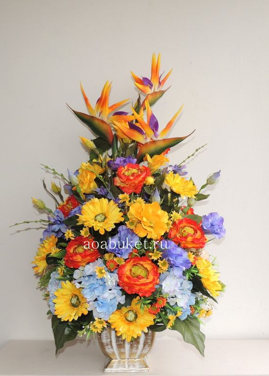 Экзотическая Композиция из искусственных цветов стрелицы - яркая Стрелиция цветок № ОД001