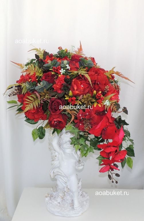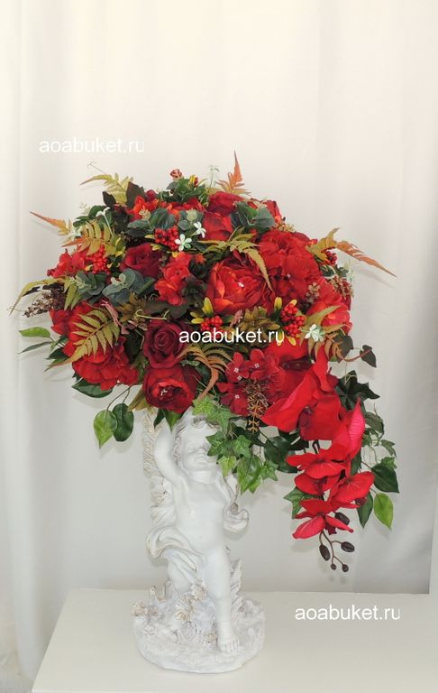 Композиция из искусственных цветов на статуэтке ангела Алая Феерия № СА002