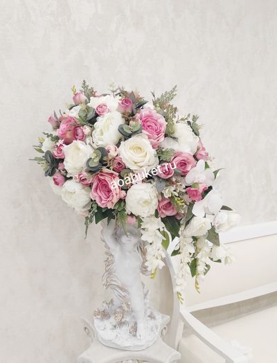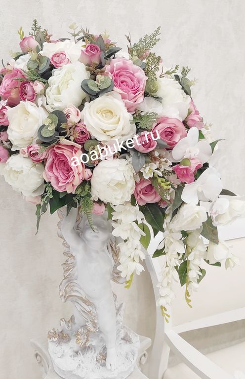 Композиция из искусственных цветов на статуэтке Ангелочка Беатрис № СА007