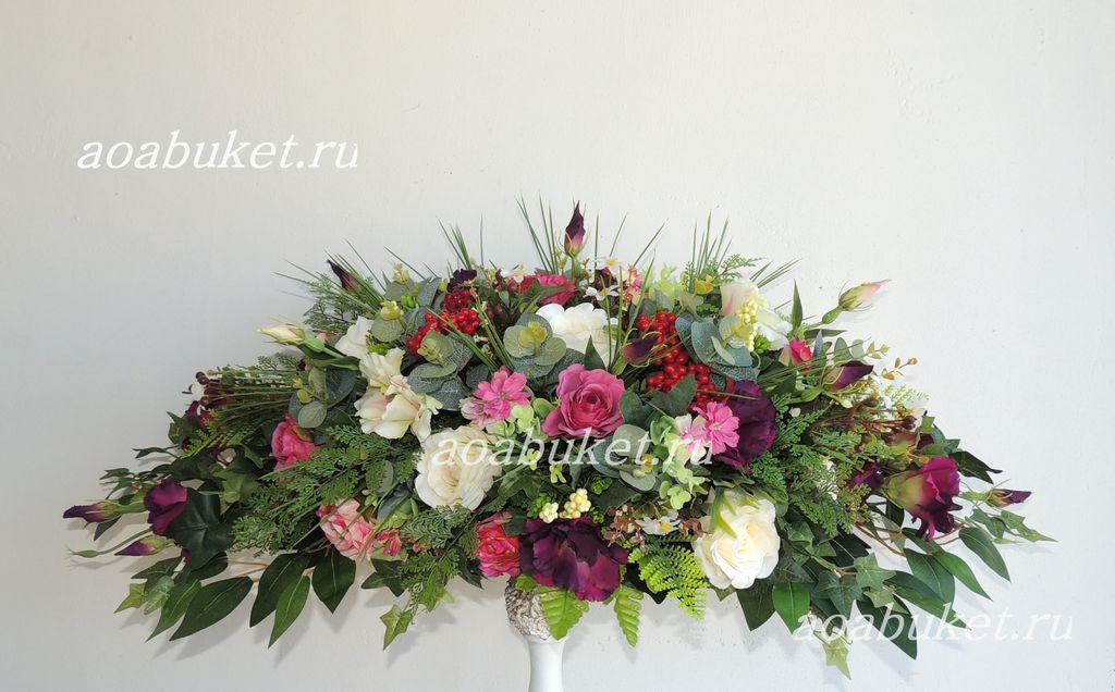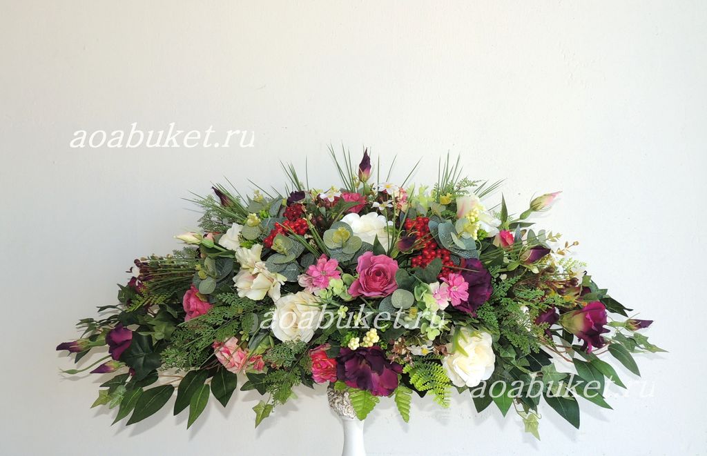 Горизонтальная композиция из искусственных цветов вытянутой формы № УНС019 для украшения