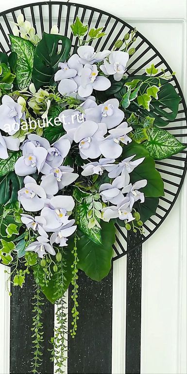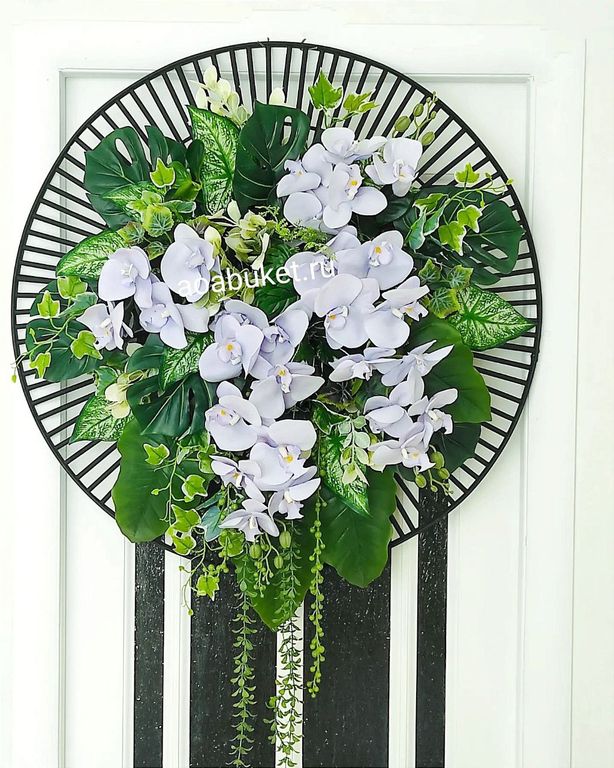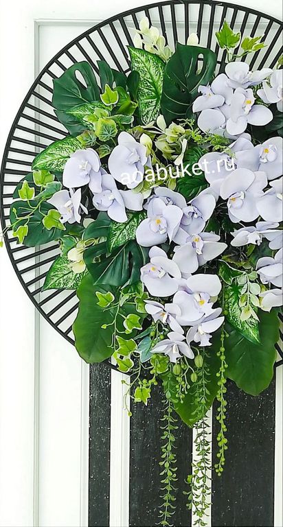 Панно круглое из искусственных растений и цветов светло сиреневой орхидеи № ВП02