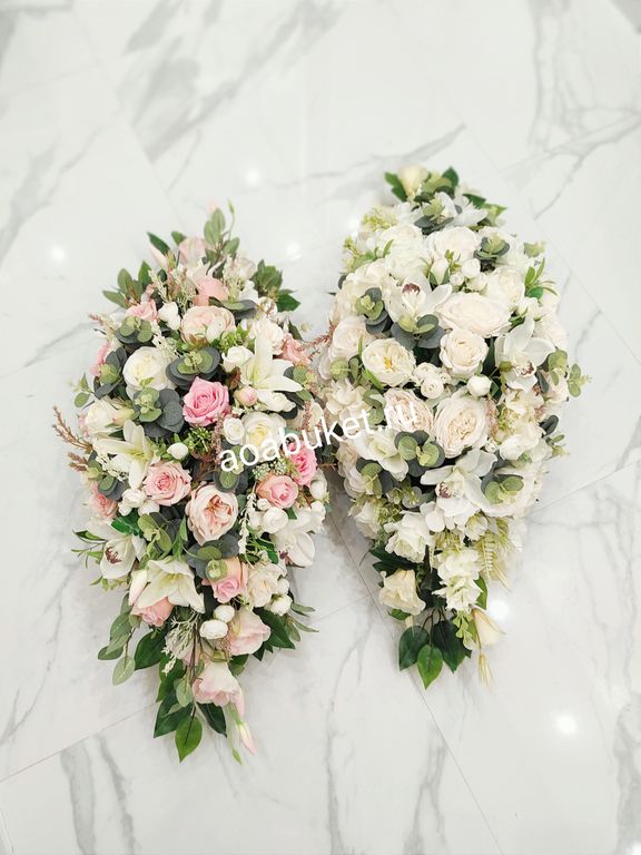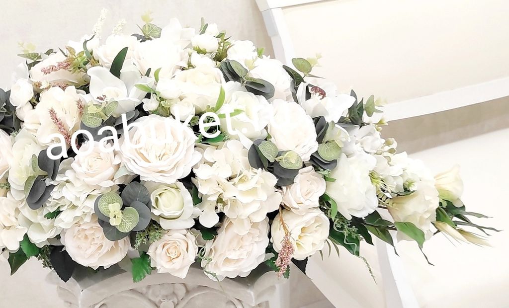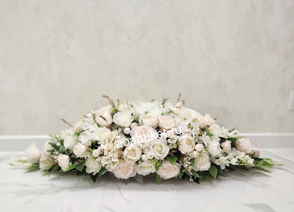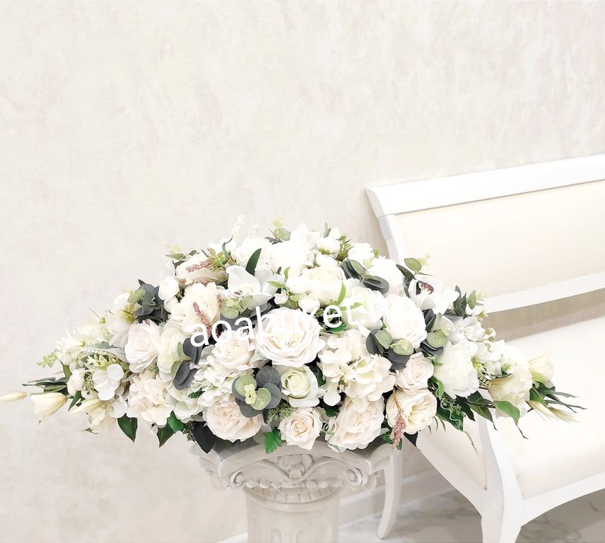 Вертикальная Композиция панно на стену из искусственных белых и кремовых цветов Белизна торжественная № ВП04